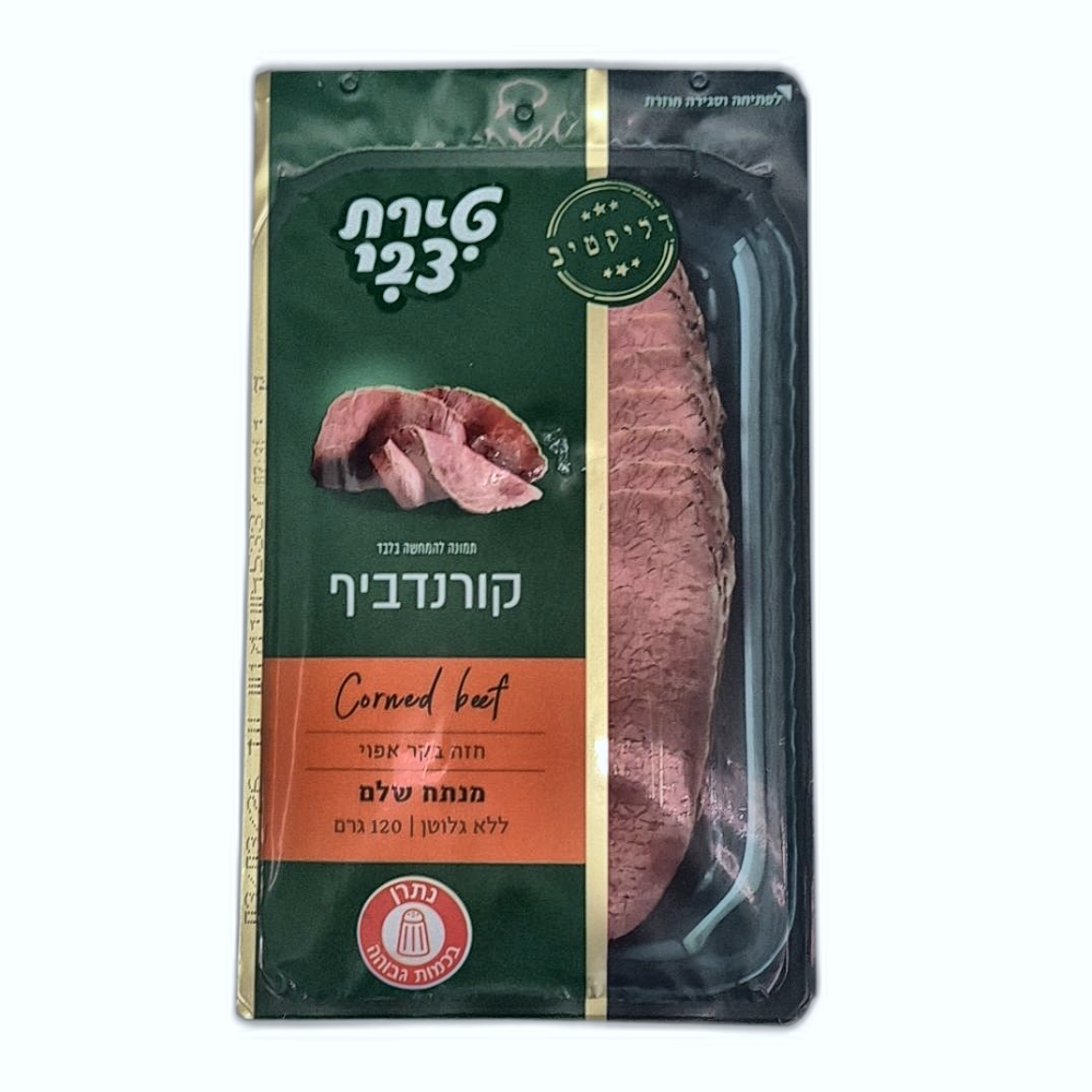 קורנדביף (Corned beef) פרוס של טירת צבי, מנותח שלם, 120 גרם. ללא גלוטן.