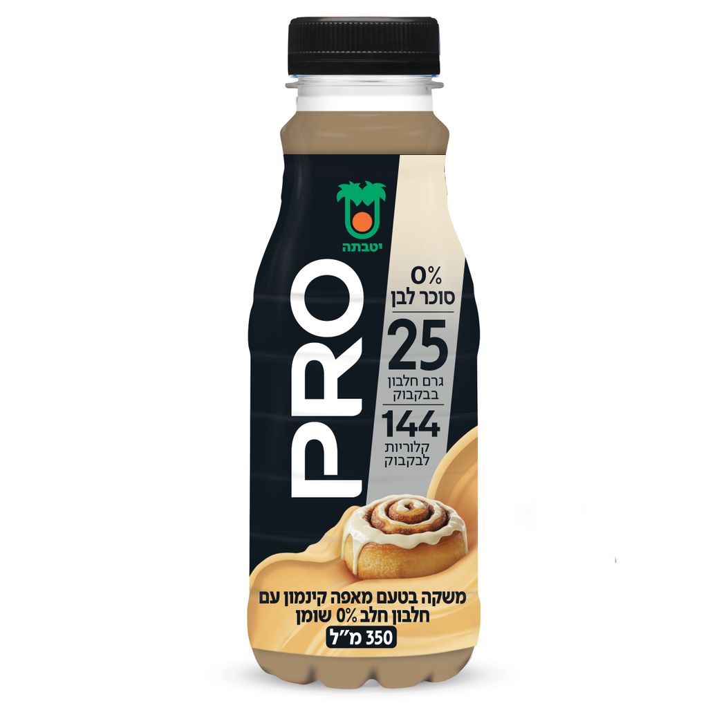 יטבתה פרו - משקה חלבון בטעם מאפה קינמון 350 מ"ל. מועשר בכ-25 גרם חלבון למוצר, דל לקטוז וללא תוספת סוכר. מכיל רכיבי חלב. יש לשמור במקרר ולנער לפני השימוש.