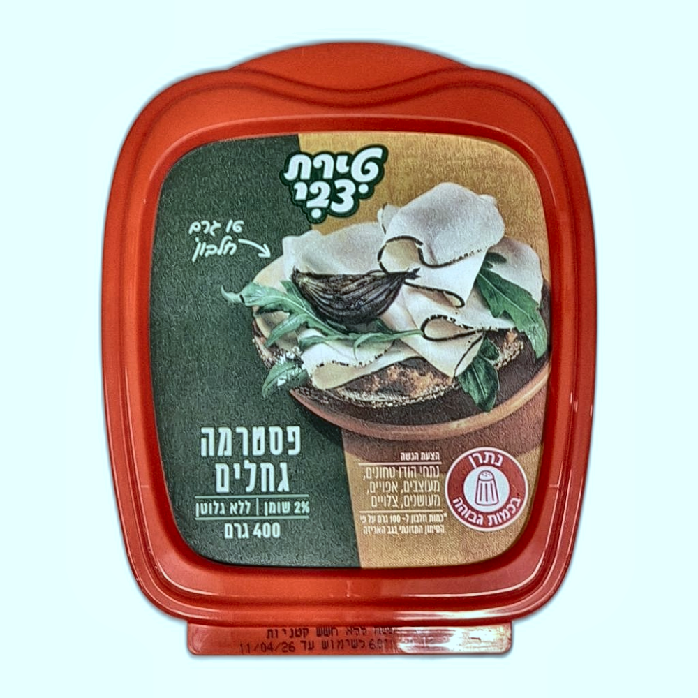 פסטרמה גחלים פרוסה של טירת צבי, באריזה של 400 גרם (ללא גלוטן).